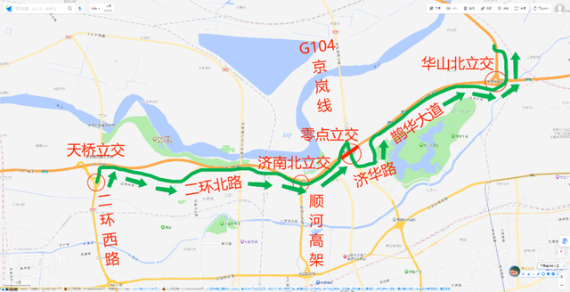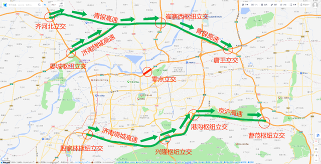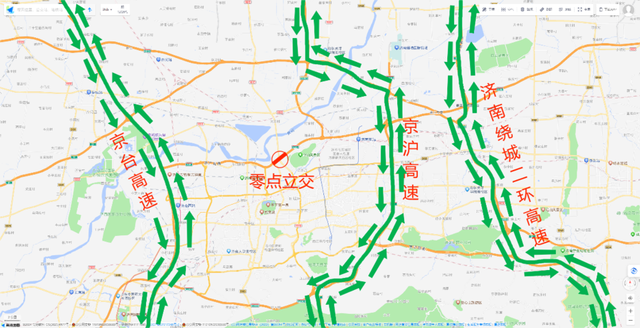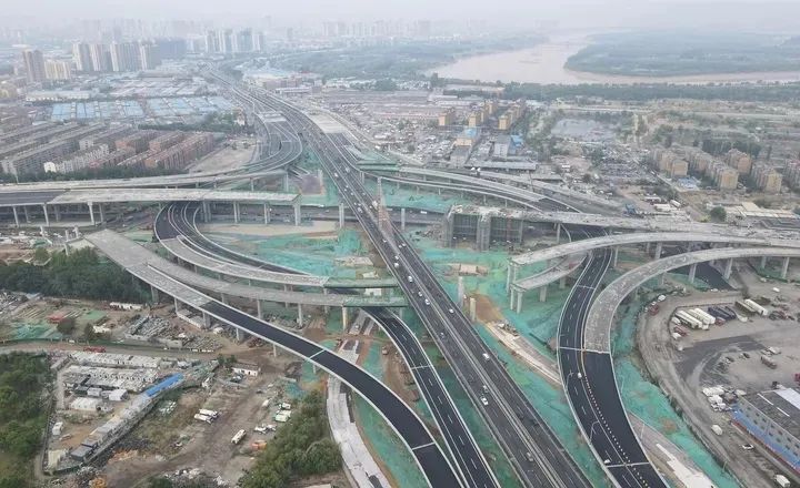 G104京岚线济南黄河公路大桥工程作为连通济南市主城区和起步区的重要通道,需改建零点立交接济广高速,高架桥向北延伸。济南零点立交改造后为涡轮型枢纽互通,主线设置为济广高速主线桥和黄河南岸主线桥,共设置14条匝道,项目建成后将实现高速公路、城市快速路和城市主干路之间的交通转换,有效解决城市立交出入口常见的车辆交织问题。