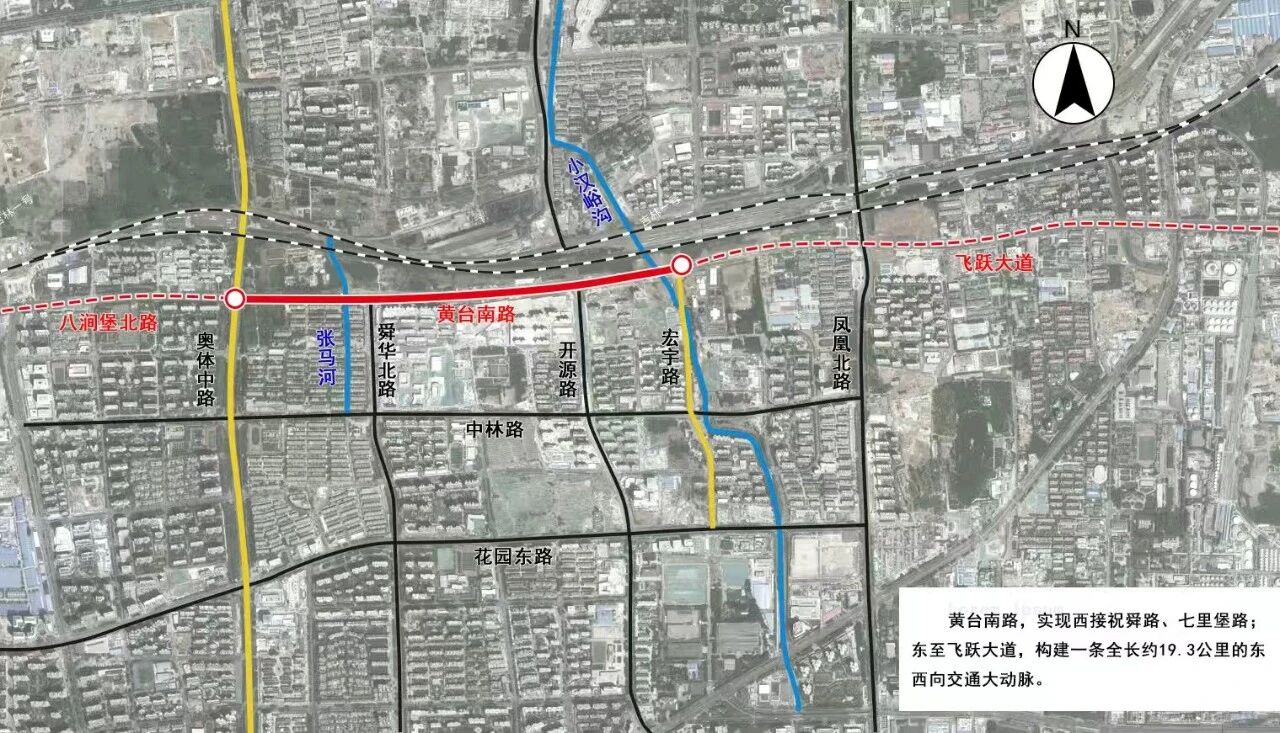 道路通车后,将实现西接祝舜路、七里堡路,无缝衔接老城区路网;东联飞跃大道,共同构建一条全长约19.3公里的东西向交通大动脉,进一步畅通唐冶、孙村片区交通联系。同时,还将奥体西路、奥体中路、凤凰路等穿越铁路通道有效串联成网,显著缓解七里堡、八涧堡等片区的东西向交通压力,整体提升区域交通互联效率。