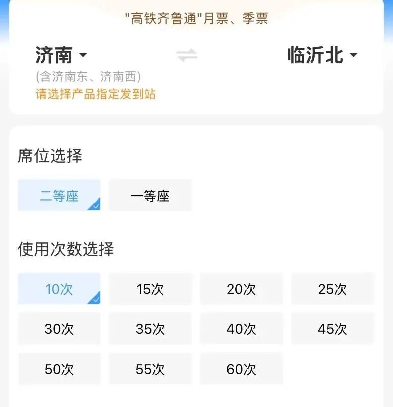 “高铁齐鲁通”月票、季票产品