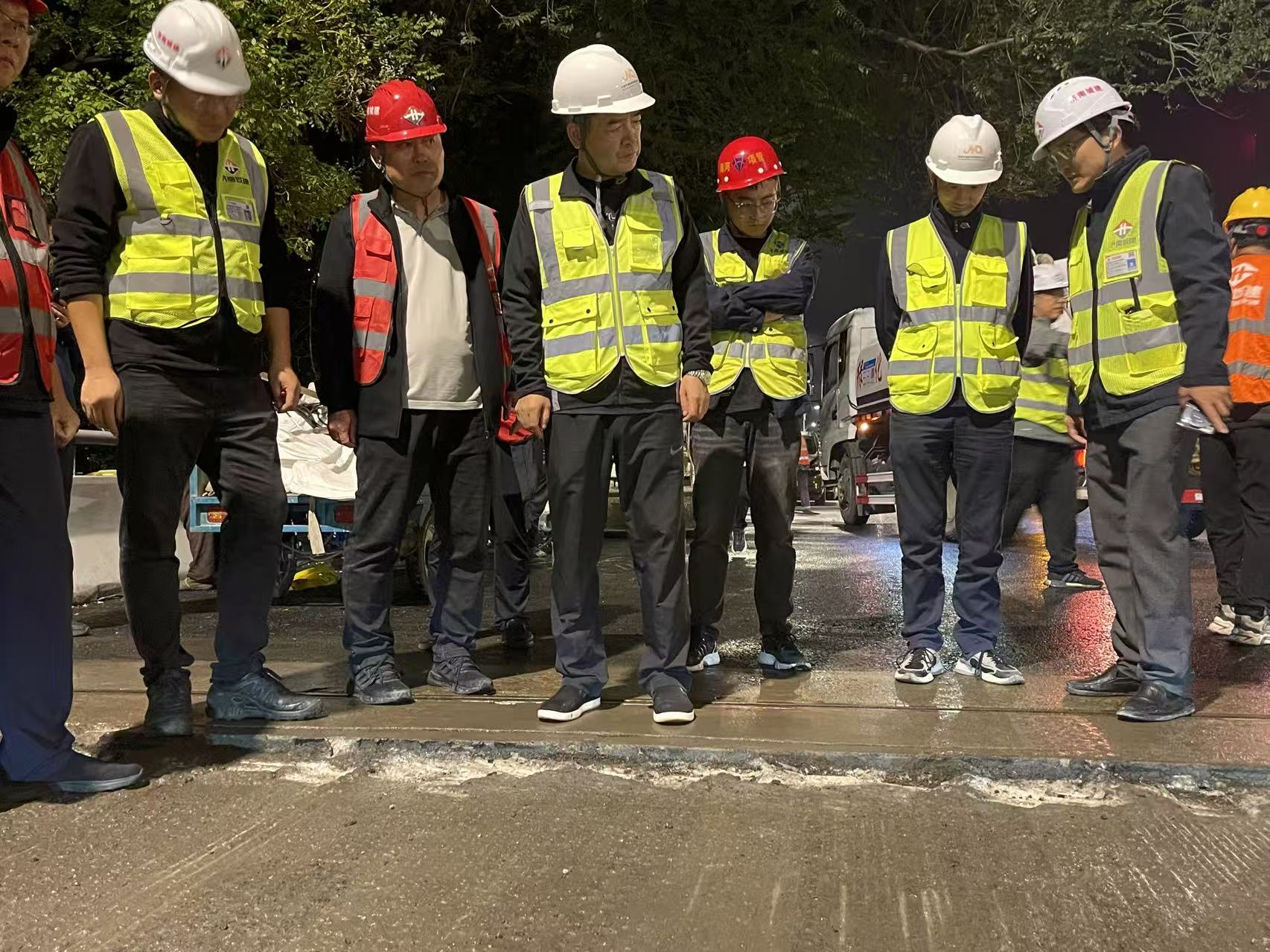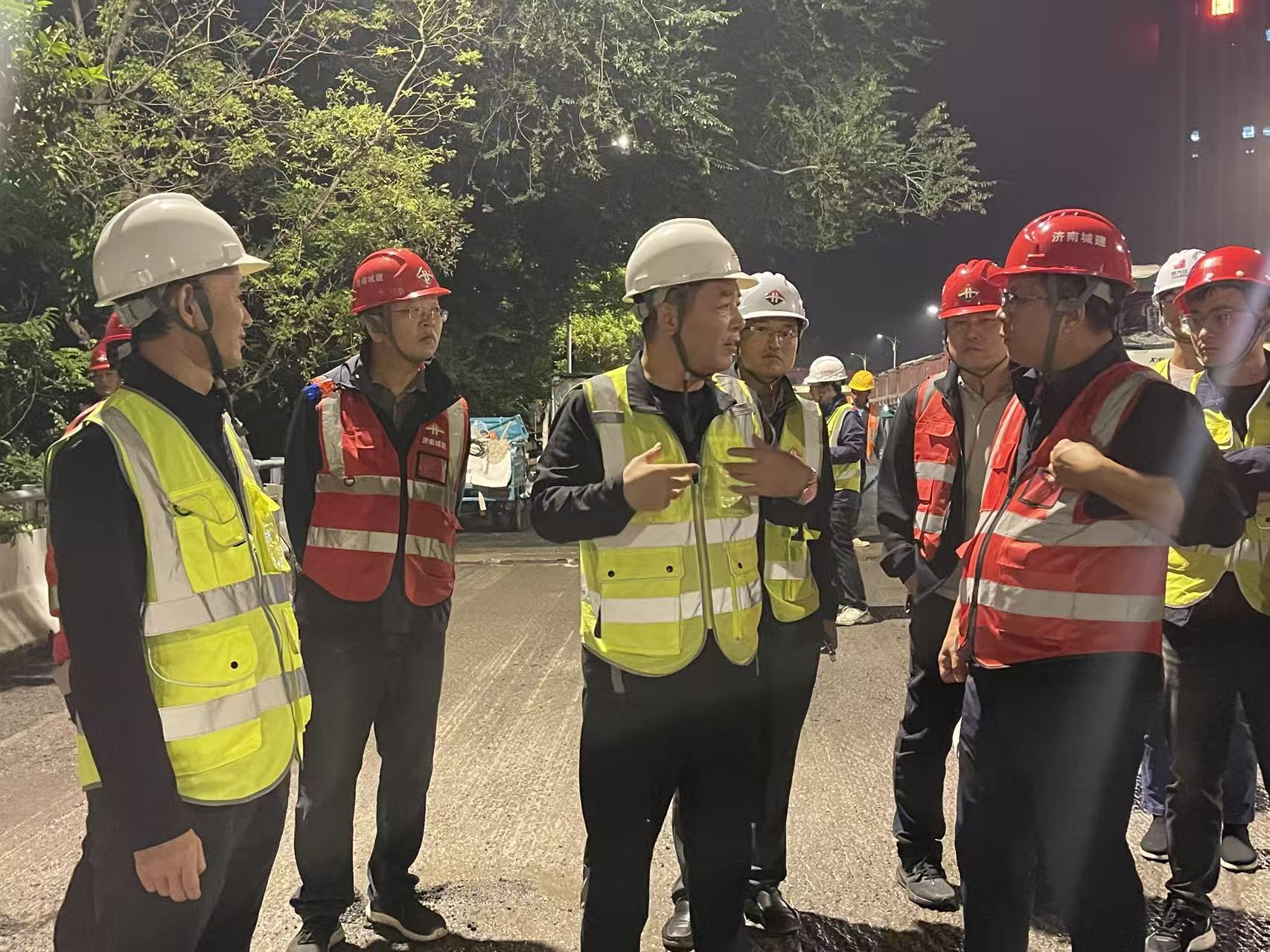 为贯彻落实《关于扎实开展国庆中秋期间安全生产检查工作的通知》(济安办发〔2025〕20号)文件要求,9月25日凌晨,济南市道路和桥隧服务中心党委书记、主任李君强到经十路整体养护提升工程施工现场调研指导工作,逐一深入查看了工程现场交通导改、施工组织、雨水箅安装、裂缝及夹层处理等施工细节,详细了解各标段当前施工进度、剩余工程量、人材机投入、每日工作量、施工计划等情况,对各标段的工作和施工进度表示了肯定。李主任结合当前工程进展情况,对各参建单位提出以下工作要求: