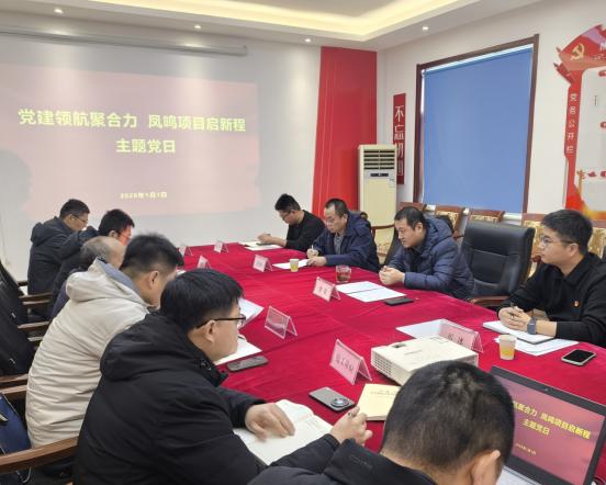2026年1月1日上午,凤鸣路项目临时党支部组织开展“党建领航聚合力 凤鸣项目启新程”主题党日活动。凤鸣路项目临时党支部成员、各参建单位项目负责人参加会议。