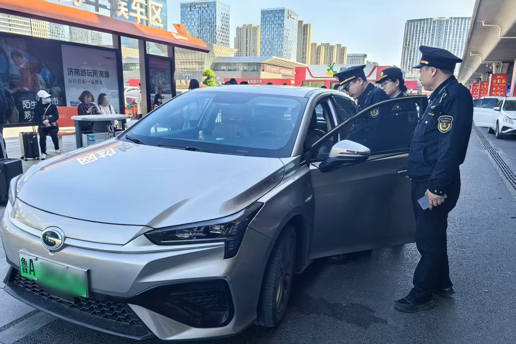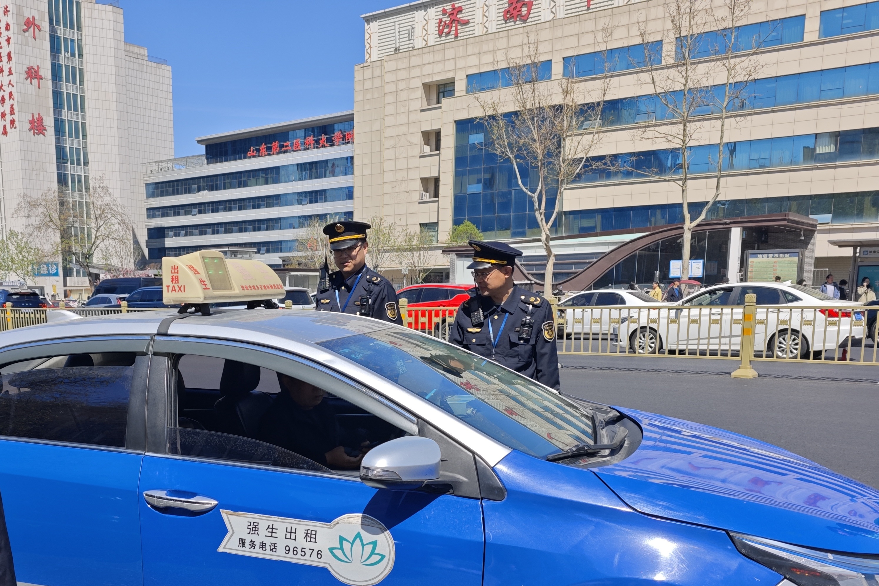 强化重点区域路面执法,守住平安出行底线。紧盯济南机场、火车站等核心客运枢纽及周边重点道路,加密执法力量部署,提高执法检查的频次与密度,重点查处“黑出租”“黑网约”等非法营运车辆,严厉打击出租车拒载、议价、绕路等侵害乘客合法权益的违规行为,全力维护场站及周边客运经营秩序,让群众出行更安心、更放心。