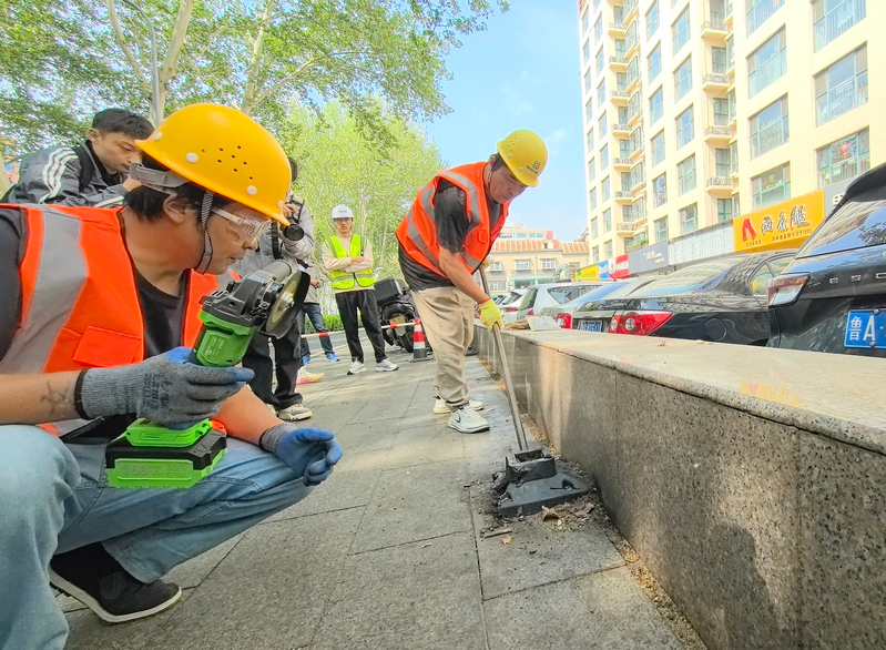 强方案引领——筑牢清钉护路“硬支撑”。3月,市交通运输局印发《济南市城市道路维护整治行动实施方案》,将“清除人行道上的破损设施、施工遗留物和私设地桩地锁等各类障碍物”列入重点整治范围。为进一步守护市民“脚下安全”,4月初专门印发《济南市城市道路“清钉护路”专项行动方案》并启动专项行动。针对沥青或混凝土路面、路缘石、人行道花砖地钉和埋筑式障碍物等情形,实行“一处一策”精准处置。同步推行“拔除/切割—打磨—回填—平整—修复”五步标准化作业流程,确保隐患清理彻底、残根锐点不留、坑洼凹陷不存,确保隐患清得净、路面整得平、安全守得牢。