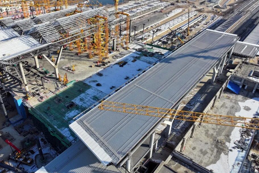 当前,滨州站建设现场一片繁忙有序,各环节施工稳步衔接、高效推进。站改区域已完成金属屋面、钢网架、外幕墙拆除作业,内部隔墙拆除进度达70%,为后续改造升级创造有利条件。
